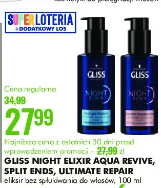Przegl膮daj podobne oferty promocyjne do Kuracja do w艂os贸w aqua revive Gliss kur night elixir!
