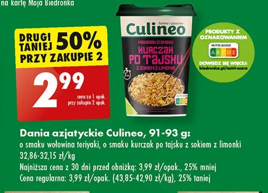 Cena produktu r贸偶ni si臋 w zale偶no艣ci od wybranego sklepu. Niestety nie posiadamy danych o aktualnych promocjach, jednak w艣r贸d archiwalnych ofert Kurczak po tajsku CULINEO Z艁OTY SMOK kosztuje od 2,99 z艂.