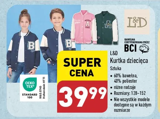 Cena produktu r贸偶ni si臋 w zale偶no艣ci od wybranego sklepu. Produkt Kurtka dzieci臋ca 128-152 L&d mo偶esz kupi膰 w promocji ju偶 od 39,99 z艂. Najta艅sza oferta, jak膮 mamy w naszej bazie jest z sieci POLOmarket. Kurtka dzieci臋ca 128-152 L&d kosztuje aktualnie 39,99 z艂. Zobacz ofert臋