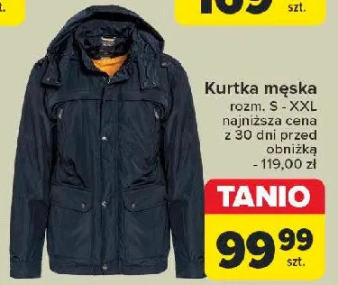 Cena produktu r贸偶ni si臋 w zale偶no艣ci od wybranego sklepu. Produkt Kurtka m臋ska ros. s-xxl mo偶esz kupi膰 w promocji ju偶 od 69,99 z艂 do 119,99 z艂. Najta艅sza oferta, jak膮 mamy w naszej bazie jest z sieci Carrefour. Kurtka m臋ska ros. s-xxl kosztuje aktualnie 69,99 z艂. Zobacz ofert臋