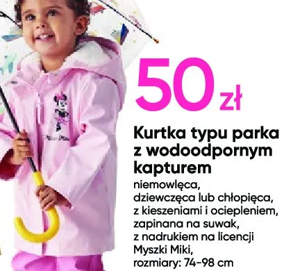 Ile kosztuje Kurtka wodoodporna z kapturem myszka miki rozm. 74-98 cm?