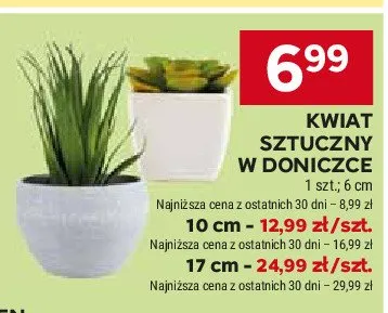 Cena produktu r贸偶ni si臋 w zale偶no艣ci od wybranego sklepu. Niestety nie posiadamy danych o aktualnych promocjach, jednak w艣r贸d archiwalnych ofert Kwiat sztuczny 6 cm kosztuje od 6,99 z艂.