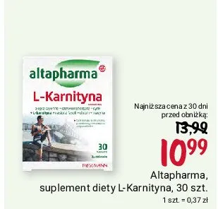 Cena produktu r贸偶ni si臋 w zale偶no艣ci od wybranego sklepu. Niestety nie posiadamy danych o aktualnych promocjach, jednak w艣r贸d archiwalnych ofert L-karnityna Altapharma kosztuje od 10,99 z艂 do 13,99 z艂.