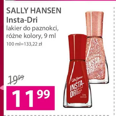 Cena produktu r贸偶ni si臋 w zale偶no艣ci od wybranego sklepu. Niestety nie posiadamy danych o aktualnych promocjach, jednak w艣r贸d archiwalnych ofert Lakier do paznokci 239 in a blush Sally hansen insta-dri kosztuje od 11,69 z艂 do 11,99 z艂.
