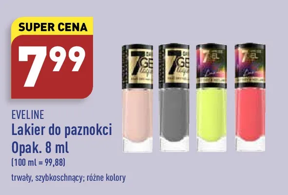 Cena produktu r贸偶ni si臋 w zale偶no艣ci od wybranego sklepu. Niestety nie posiadamy danych o aktualnych promocjach, jednak w艣r贸d archiwalnych ofert Lakier do paznokci 偶elowy 33 Eveline 7 days gel laque kosztuje od 7,99 z艂.