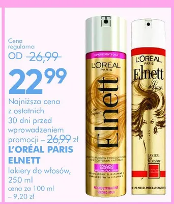 Przegl膮daj podobne oferty promocyjne do Lakier do w艂os贸w bardzo mocne utrwalenie nutri-ochrona L'oreal elnett!