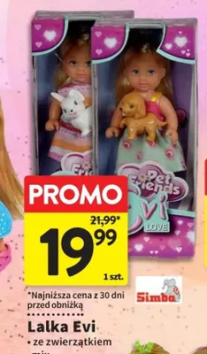 Cena produktu r贸偶ni si臋 w zale偶no艣ci od wybranego sklepu. Niestety nie posiadamy danych o aktualnych promocjach, jednak w艣r贸d archiwalnych ofert Lalka evi ze zwierz膮tkiem Simba kosztuje od 19,99 z艂 do 24,99 z艂.