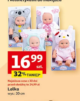 Cena produktu r贸偶ni si臋 w zale偶no艣ci od wybranego sklepu. Niestety nie posiadamy danych o aktualnych promocjach, jednak w艣r贸d archiwalnych ofert Lalka One two fun (by auchan) kosztuje od 16,99 z艂 do 19,99 z艂.