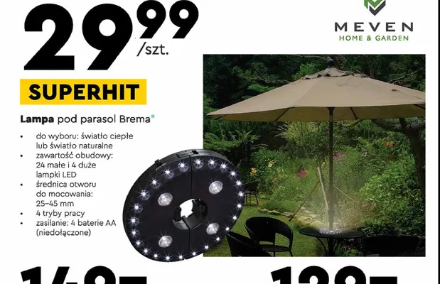 Gdzie mo偶na tanio kupi膰 produkt Lampa pod parasol brema 艣wiat艂o ciep艂e MEVEN?