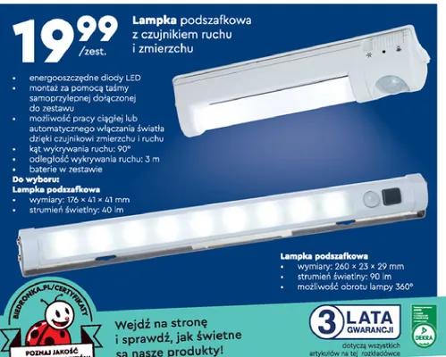 Przegl膮daj podobne oferty promocyjne do Lampa podszafkowa z czujnikiem ruchu 176 x 41 x 41 mm!