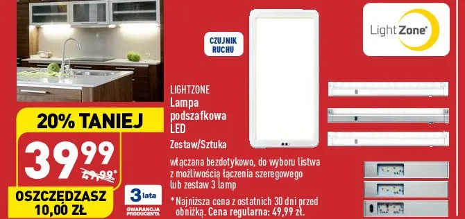Zastanawiasz si臋, gdzie kupi膰 i ile kosztuje produkt Lampa podszafkowa z czujnikiem ruchu szynowa Light zone? Regularnie sprawdzamy, czy jest promocja na ten produkt w Biedronka, Lidl, Kaufland, Auchan, Netto, Makro i innych sklepach. Aktualnie nie posiadamy ofert promocyjnych na ten produkt.