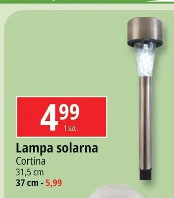 Cena produktu r贸偶ni si臋 w zale偶no艣ci od wybranego sklepu. Niestety nie posiadamy danych o aktualnych promocjach, jednak w艣r贸d archiwalnych ofert Lampa solarna 31.5 cm Cortina kosztuje od 4,99 z艂.