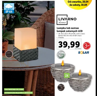 Cena produktu r贸偶ni si臋 w zale偶no艣ci od wybranego sklepu. Niestety nie posiadamy danych o aktualnych promocjach, jednak w艣r贸d archiwalnych ofert Lampa solarna led 10.5 x 9.5 cm LIVARNO HOME kosztuje od 39,99 z艂.