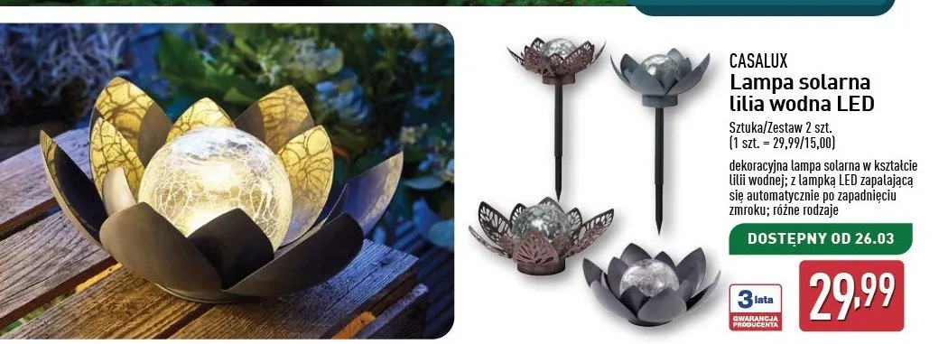 Przegl膮daj podobne oferty promocyjne do Lampa solarna lilia wodna led Casalux!