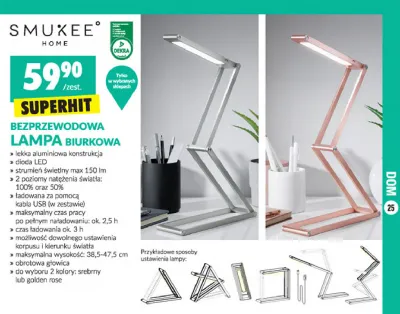Przegl膮daj podobne oferty promocyjne do Lampka biurkowa bezprzewodowa srebrna Smukee home!