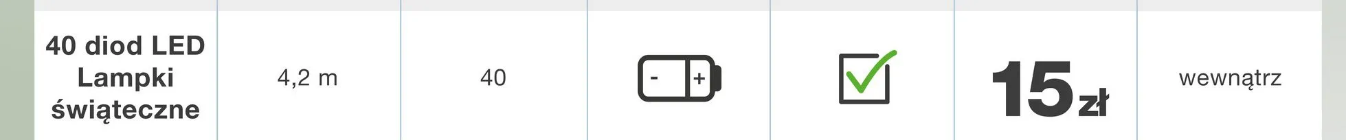 Zastanawiasz si臋, gdzie kupi膰 i ile kosztuje produkt Lampki 40 led? Regularnie sprawdzamy, czy jest promocja na ten produkt w Biedronka, Lidl, Kaufland, Auchan, Netto, Makro i innych sklepach. Aktualnie nie posiadamy ofert promocyjnych na ten produkt.