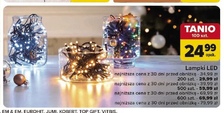 Zastanawiasz si臋, gdzie kupi膰 i ile kosztuje produkt Lampki choinkowe 200 led? Regularnie sprawdzamy, czy jest promocja na ten produkt w Biedronka, Lidl, Kaufland, Auchan, Netto, Makro i innych sklepach. Aktualnie nie posiadamy ofert promocyjnych na ten produkt.