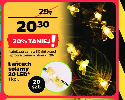 Cena produktu różni się w zależności od wybranego sklepu. Produkt Łańcuch solarny ważki 20 led możesz kupić w promocji już od 13,99 zł do 14,99 zł. Najtańsza oferta, jaką mamy w naszej bazie jest z sieci Leroy Merlin. Łańcuch solarny ważki 20 led kosztuje aktualnie 13,99 zł. Zobacz ofertę