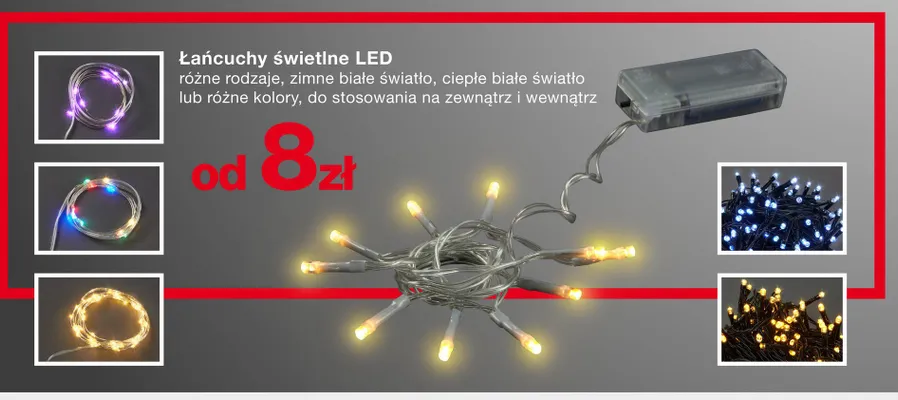 Łańcuch świetlny 20 led barwa ciepła aktualnie nie występuje w bazie naszych gazetek promocyjnych. Nie martw się! Gdy tylko pojawi się ciekawa promocja na Łańcuch świetlny 20 led barwa ciepła, umieścimy ją na naszej stronie