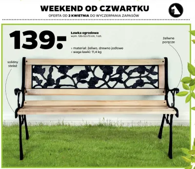 艁awka ogrodowa 126 x 52 x 73 cm aktualnie nie wyst臋puje w bazie naszych gazetek promocyjnych. Nie martw si臋! Gdy tylko pojawi si臋 ciekawa promocja na 艁awka ogrodowa 126 x 52 x 73 cm, umie艣cimy j膮 na naszej stronie