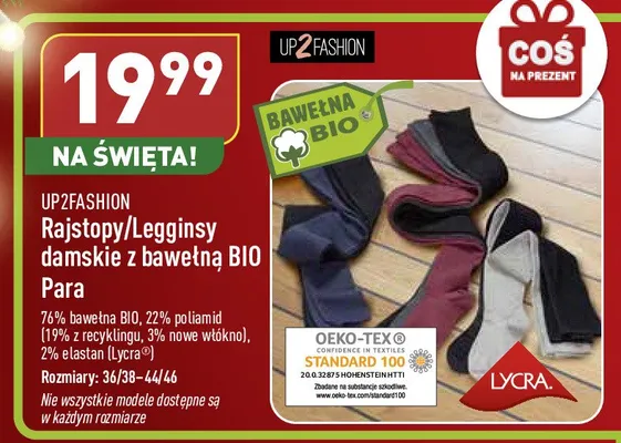 Zastanawiasz si臋, gdzie kupi膰 i ile kosztuje produkt Legginsy damskie z bawe艂n膮 bio 36/38-44/46 Up2fashion? Regularnie sprawdzamy, czy jest promocja na ten produkt w Biedronka, Lidl, Kaufland, Auchan, Netto, Makro i innych sklepach. Aktualnie nie posiadamy ofert promocyjnych na ten produkt.