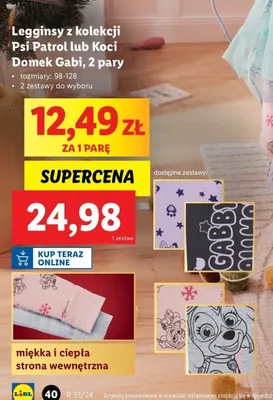 Zastanawiasz si臋, gdzie kupi膰 i ile kosztuje produkt Legginsy dziewcz臋ce psi patrol 98-128? Regularnie sprawdzamy, czy jest promocja na ten produkt w Biedronka, Lidl, Kaufland, Auchan, Netto, Makro i innych sklepach. Aktualnie nie posiadamy ofert promocyjnych na ten produkt.