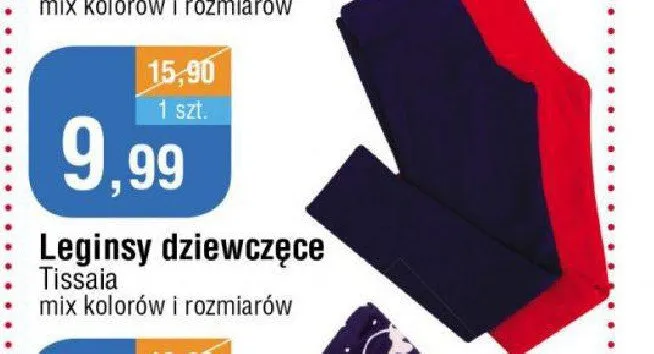 Cena produktu r贸偶ni si臋 w zale偶no艣ci od wybranego sklepu. Niestety nie posiadamy danych o aktualnych promocjach, jednak w艣r贸d archiwalnych ofert Legginsy dziewcz臋ce Tissaia kosztuje od 9,99 z艂.