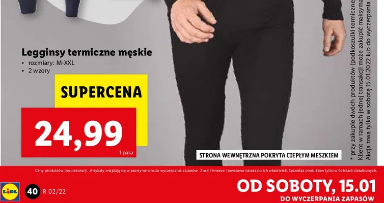 Zastanawiasz si臋, gdzie kupi膰 i ile kosztuje produkt Legginsy termiczne m臋skie m-xl? Regularnie sprawdzamy, czy jest promocja na ten produkt w Biedronka, Lidl, Kaufland, Auchan, Netto, Makro i innych sklepach. Aktualnie nie posiadamy ofert promocyjnych na ten produkt.
