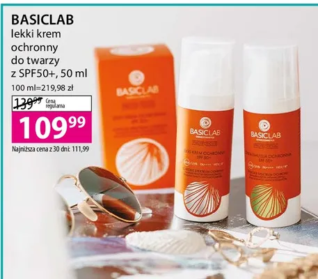 Cena produktu r贸偶ni si臋 w zale偶no艣ci od wybranego sklepu. Niestety nie posiadamy danych o aktualnych promocjach, jednak w艣r贸d archiwalnych ofert Lekki krem ochronny spf 50 Basiclab kosztuje od 109,99 z艂.