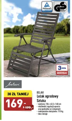 Cena produktu r贸偶ni si臋 w zale偶no艣ci od wybranego sklepu. Niestety nie posiadamy danych o aktualnych promocjach, jednak w艣r贸d archiwalnych ofert Le偶ak ogrodowy 106 x 62.5 x 148 cm BELAVI kosztuje od 169 z艂 do 199 z艂.