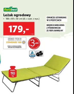 Ile kosztuje Le偶ak ogrodowy 188 x 69 x 30 cm Florabest?