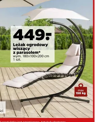 Gdzie można tanio kupić produkt Leżak ogrodowy wiszący z parasolem 180 x 100 x 200 cm?