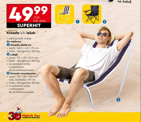 Zastanawiasz się, gdzie kupić i ile kosztuje produkt Leżak plażowy 93 x 51 x 57.5 cm? Regularnie sprawdzamy, czy jest promocja na ten produkt w Biedronka, Lidl, Kaufland, Auchan, Netto, Makro i innych sklepach. Aktualnie nie posiadamy ofert promocyjnych na ten produkt.