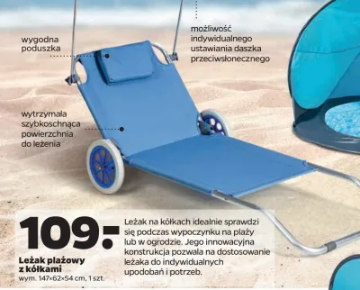 Gdzie można tanio kupić produkt Leżak plażowy na kółkach składny 147 x 62 x 54 cm?