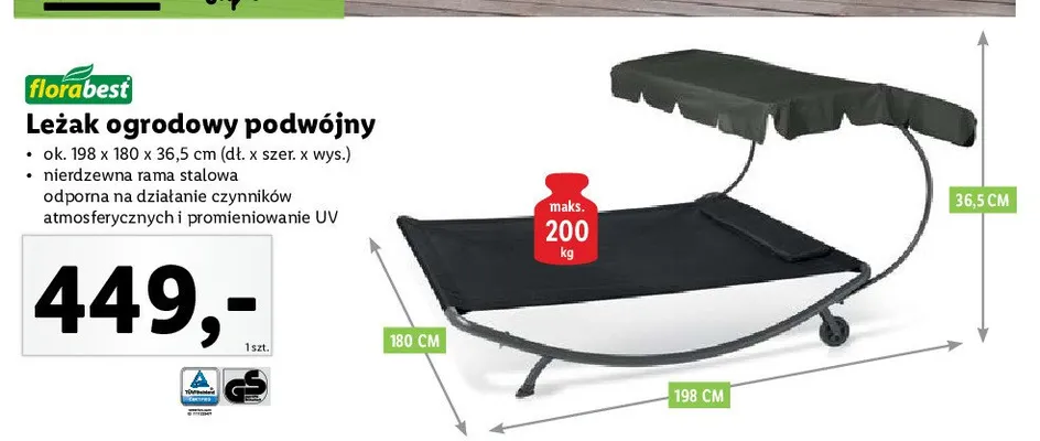 Przegl膮daj podobne oferty promocyjne do Le偶ak podw贸jny 198 x 180 x 36.5 cm Florabest!