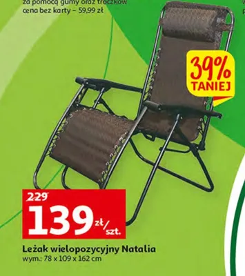 Zastanawiasz si臋, gdzie kupi膰 i ile kosztuje produkt Le偶ak wielopozycyjny natalia wym. 162 x 109 x 78 cm? Regularnie sprawdzamy, czy jest promocja na ten produkt w Biedronka, Lidl, Kaufland, Auchan, Netto, Makro i innych sklepach. Aktualnie nie posiadamy ofert promocyjnych na ten produkt.