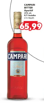 Cena produktu r贸偶ni si臋 w zale偶no艣ci od wybranego sklepu. Produkt Likier Campari mo偶esz kupi膰 w promocji ju偶 od 44,99 z艂 do 98,39 z艂. Najta艅sza oferta, jak膮 mamy w naszej bazie jest z sieci Lidl. Likier Campari kosztuje aktualnie 44,99 z艂. Zobacz ofert臋