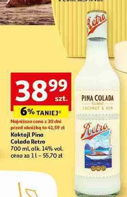 Zastanawiasz si臋, gdzie kupi膰 i ile kosztuje produkt Likier Pina colada retro? Regularnie sprawdzamy, czy jest promocja na ten produkt w Biedronka, Lidl, Kaufland, Auchan, Netto, Makro i innych sklepach. Aktualnie nie posiadamy ofert promocyjnych na ten produkt.