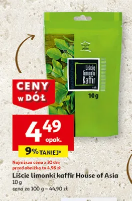 Cena produktu r贸偶ni si臋 w zale偶no艣ci od wybranego sklepu. Niestety nie posiadamy danych o aktualnych promocjach, jednak w艣r贸d archiwalnych ofert Li艣cie limonki House of asia kosztuje od 4,49 z艂 do 5,99 z艂.