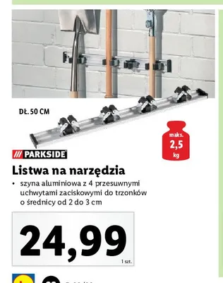 Ile kosztuje Listwa aluminiowa z uchwytami na narz臋dzia ogrodowe Parkside?