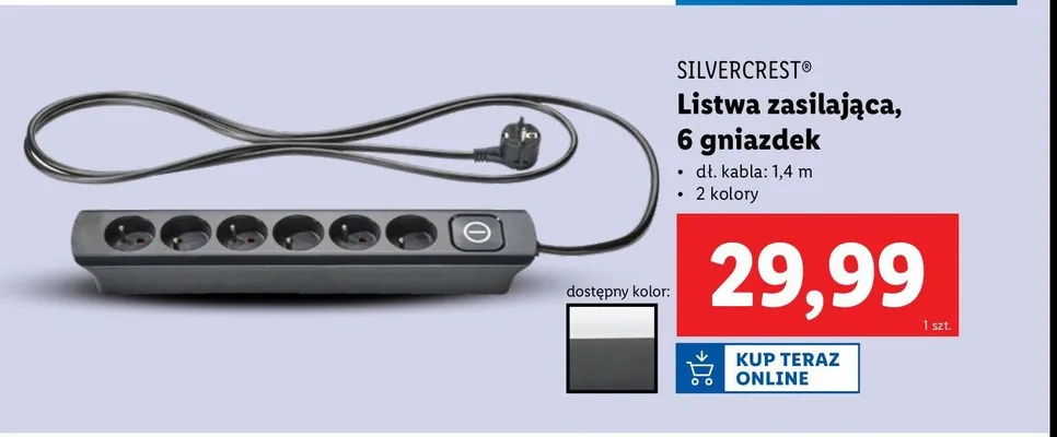 Ile kosztuje Listwa zasilaj膮ca 6 gniazdek 1.4 m Silvercrest?