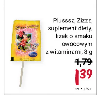 Cena produktu r贸偶ni si臋 w zale偶no艣ci od wybranego sklepu. Niestety nie posiadamy danych o aktualnych promocjach, jednak w艣r贸d archiwalnych ofert Lizak disney Plusssz zizz kosztuje od 1,39 z艂.