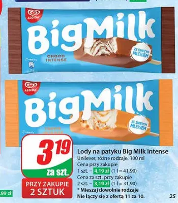 Cena produktu r贸偶ni si臋 w zale偶no艣ci od wybranego sklepu. Niestety nie posiadamy danych o aktualnych promocjach, jednak w艣r贸d archiwalnych ofert L贸d choco intense Algida kosztuje od 2,98 z艂 do 4,19 z艂.
