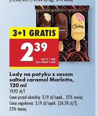 Cena produktu r贸偶ni si臋 w zale偶no艣ci od wybranego sklepu. Niestety nie posiadamy danych o aktualnych promocjach, jednak w艣r贸d archiwalnych ofert L贸d chocolate lava Marletto kosztuje od 2,13 z艂 do 2,39 z艂.