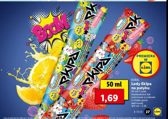 Cena produktu r贸偶ni si臋 w zale偶no艣ci od wybranego sklepu. Niestety nie posiadamy danych o aktualnych promocjach, jednak w艣r贸d archiwalnych ofert L贸d ekipa Koral kosztuje od 1,69 z艂 do 1,99 z艂.