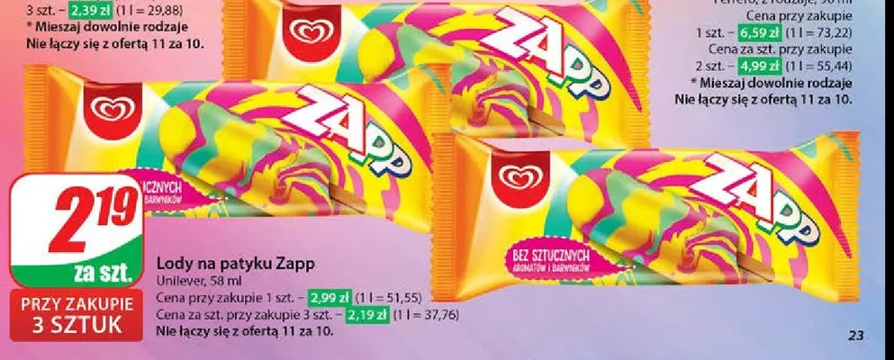 Cena produktu r贸偶ni si臋 w zale偶no艣ci od wybranego sklepu. Niestety nie posiadamy danych o aktualnych promocjach, jednak w艣r贸d archiwalnych ofert L贸d fruit Algida zapp kosztuje od 1,86 z艂 do 3,99 z艂.