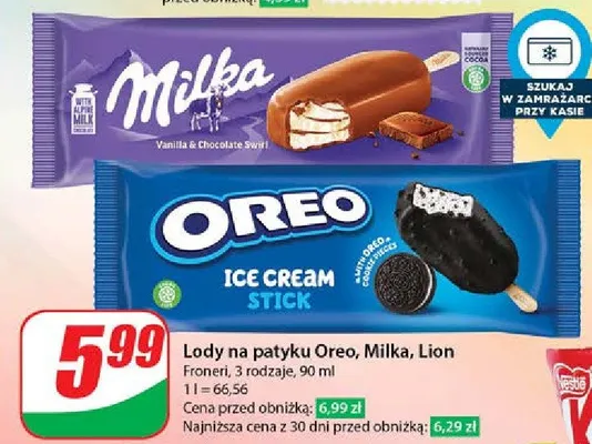 Cena produktu r贸偶ni si臋 w zale偶no艣ci od wybranego sklepu. Niestety nie posiadamy danych o aktualnych promocjach, jednak w艣r贸d archiwalnych ofert L贸d Lion kosztuje od 4 z艂 do 6,29 z艂.