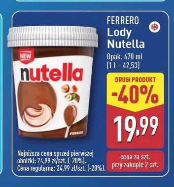 Cena produktu r贸偶ni si臋 w zale偶no艣ci od wybranego sklepu. Niestety nie posiadamy danych o aktualnych promocjach, jednak w艣r贸d archiwalnych ofert L贸d Nutella kosztuje od 16,99 z艂 do 19,99 z艂.