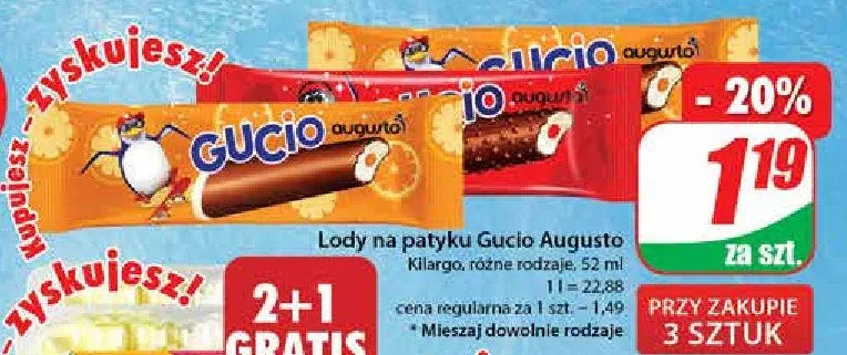 Przegl膮daj podobne oferty promocyjne do L贸d o smaku ananasowym w polewie pomara艅czowej i kakaowej Augusto gucio!