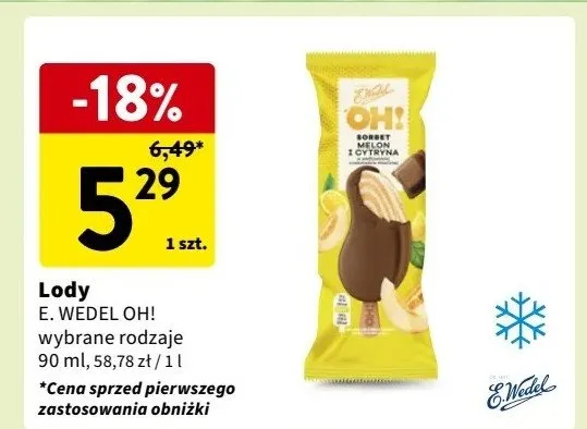 Gdzie mo偶na tanio kupi膰 produkt L贸d oh! sorbet melon i cytryna E. WEDEL OH!?